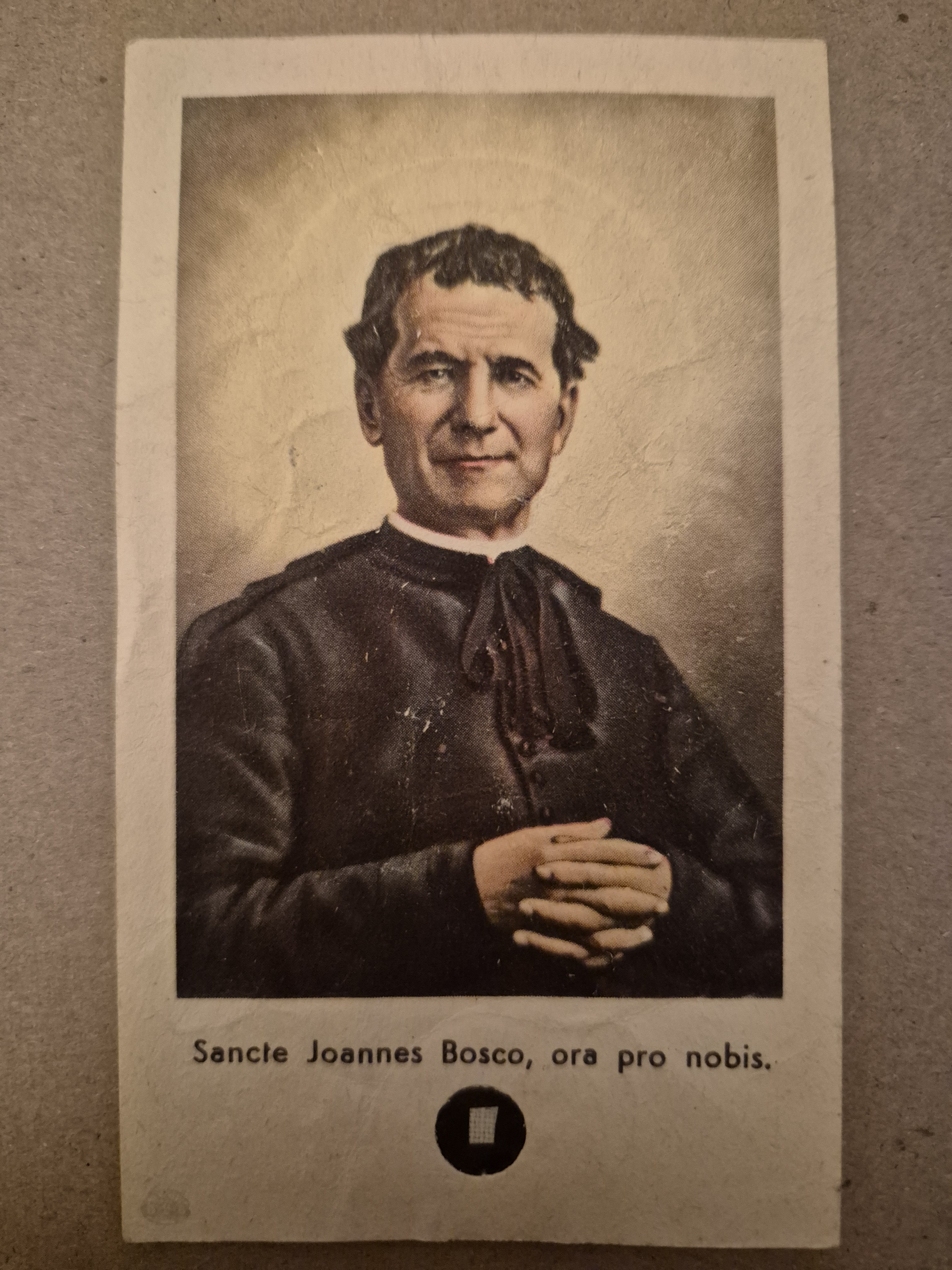 My baptismal sponsor, knowing that I attended Don Bosco College (in Belgium), gave me a reliquary card today (containing a piece of his clothing) that she found among her father's old belongings. She believes he certainly played a role in my conversion, even if it was a belated one, and he will likely be the patron saint of my baptism. God bless Sylvie (my sponsor), and may Saint John Bosco guide the student in faith that I am and help me draw closer to our Lord Jesus-Christ. Praise to God.